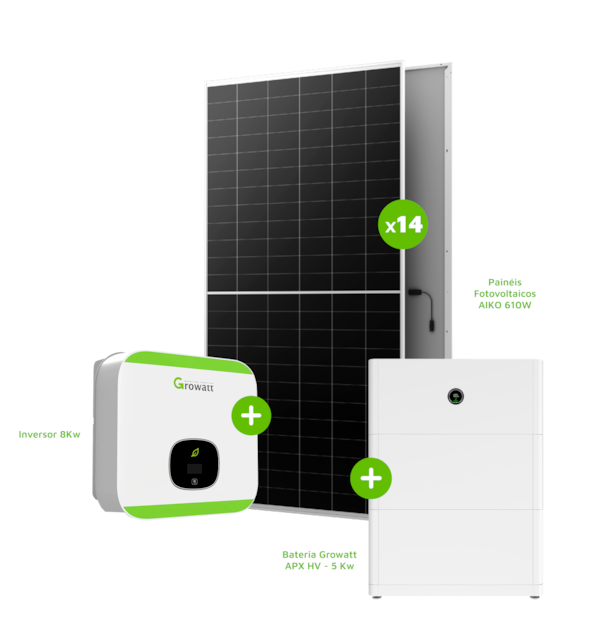 Kit 14 Painéis Solares 8540W (Trifásico) + Bateria 5 kW