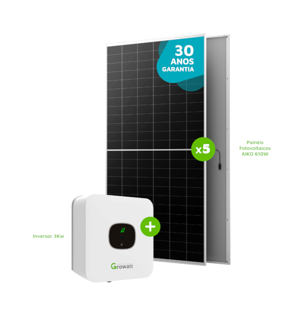 Kit 5 Painéis Solares AIKO 610W - 3050W (Monofásico)