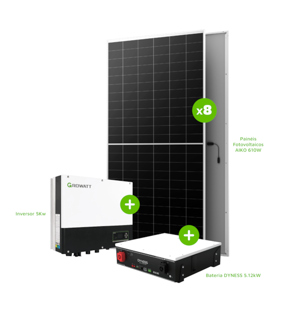 Kit 8 Painéis Solares 4880W (Monofásico) + Bateria 5.12 kW