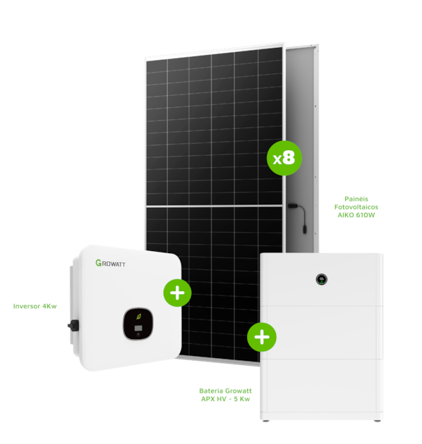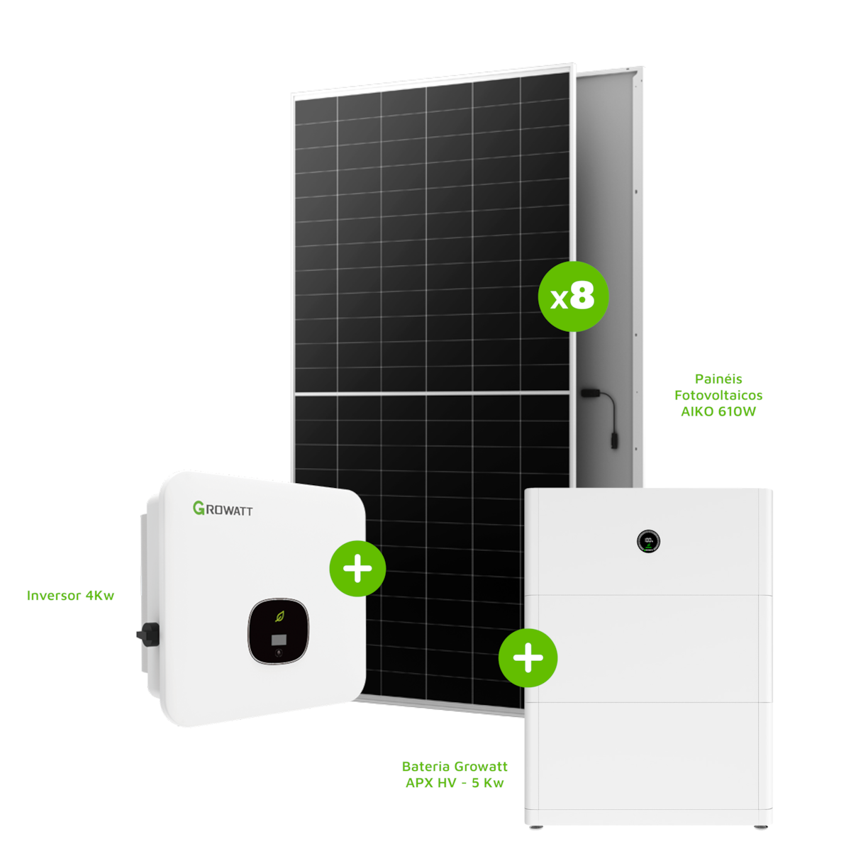 Kit 8 Painéis Solares 4880W (Trifásico) + Bateria 5 kW