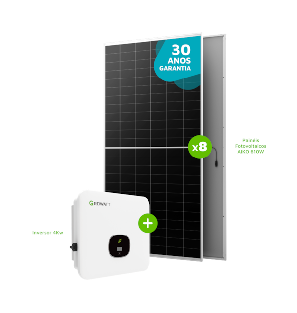 Kit 8 Painéis Solares AIKO 610W - 4880W (Monofásico)