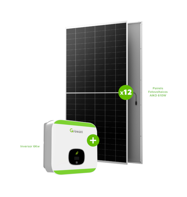 Kit 12 Painéis Solares AIKO 610W - 7320W (Trifásico)